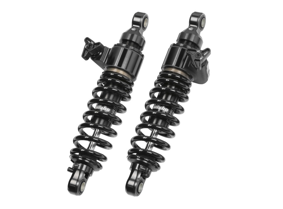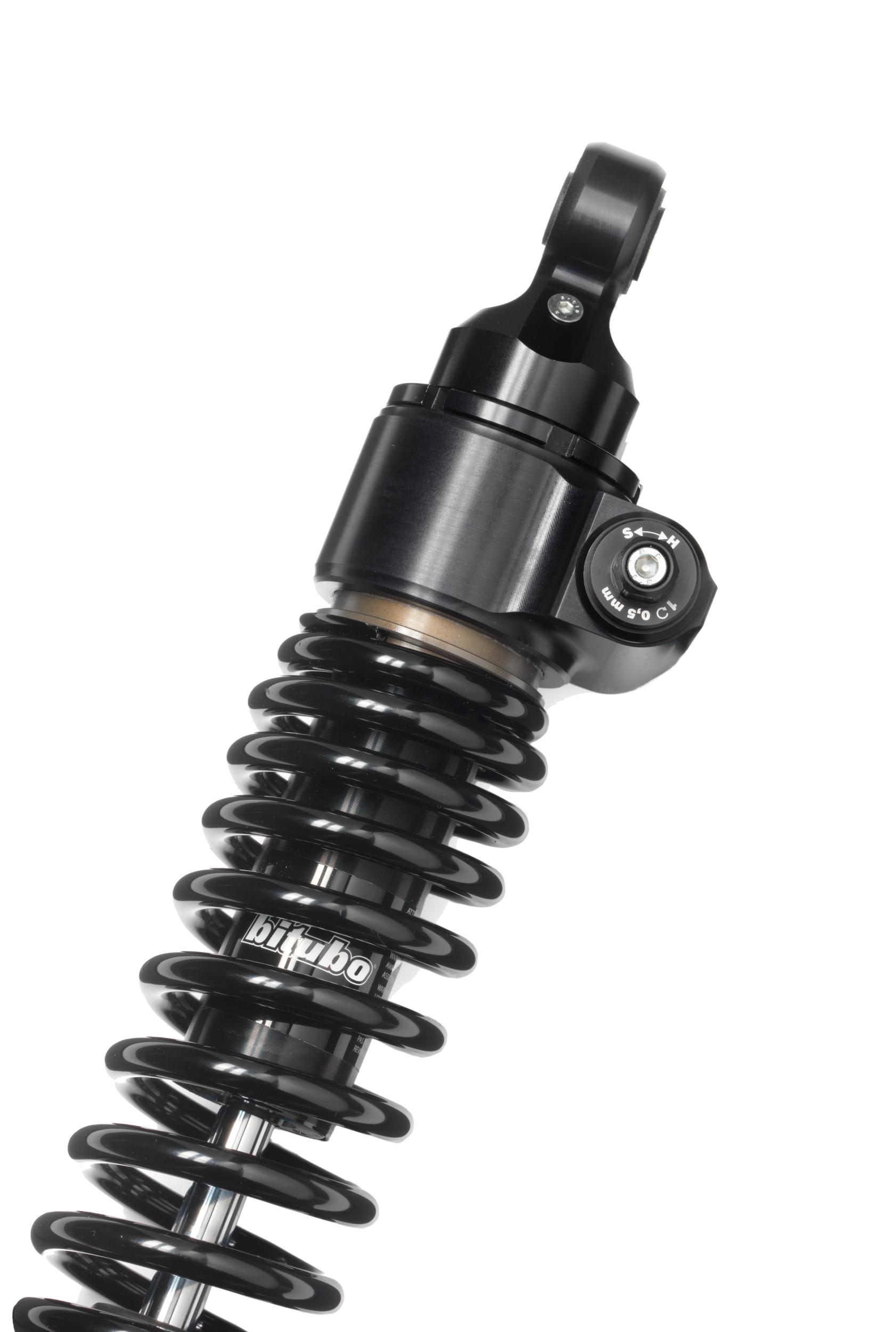 With WME22V2 Bitubo introduces a compact hydraulic preload on all pairs of shock absorbers of the WME series. With this new device it is possible to adjust the spring preload without having to intervene on the appropriate adjustment rings, but by means of a common hex key or a very practical and compact adjustment knob offered as an optional. Bikers who ride this type of motorcycle are looking for a product that offers comfort and aesthetics. The WME22V2 shock absorbers are single-chamber pressurized with nitrogen and equipped with an oil/gas separator floating piston. The body of each WME22V2 is produced in a special high-resistance alloy steel and equipped with aluminum heads machined from solid with numerically controlled machines (CNC). As per standard, the look of WME22V2 is completely black in every part except the stem. Both shock absorbers are equipped with upper and lower attachment heads in aluminum alloy machined from solid, body and rod are made of high-strength alloy steel while the springs are in Cr-Si alloy steel and available in chrome or black version. Each shock absorber is also pressurized with nitrogen and equipped with an aluminum oil/gas separator floating piston.