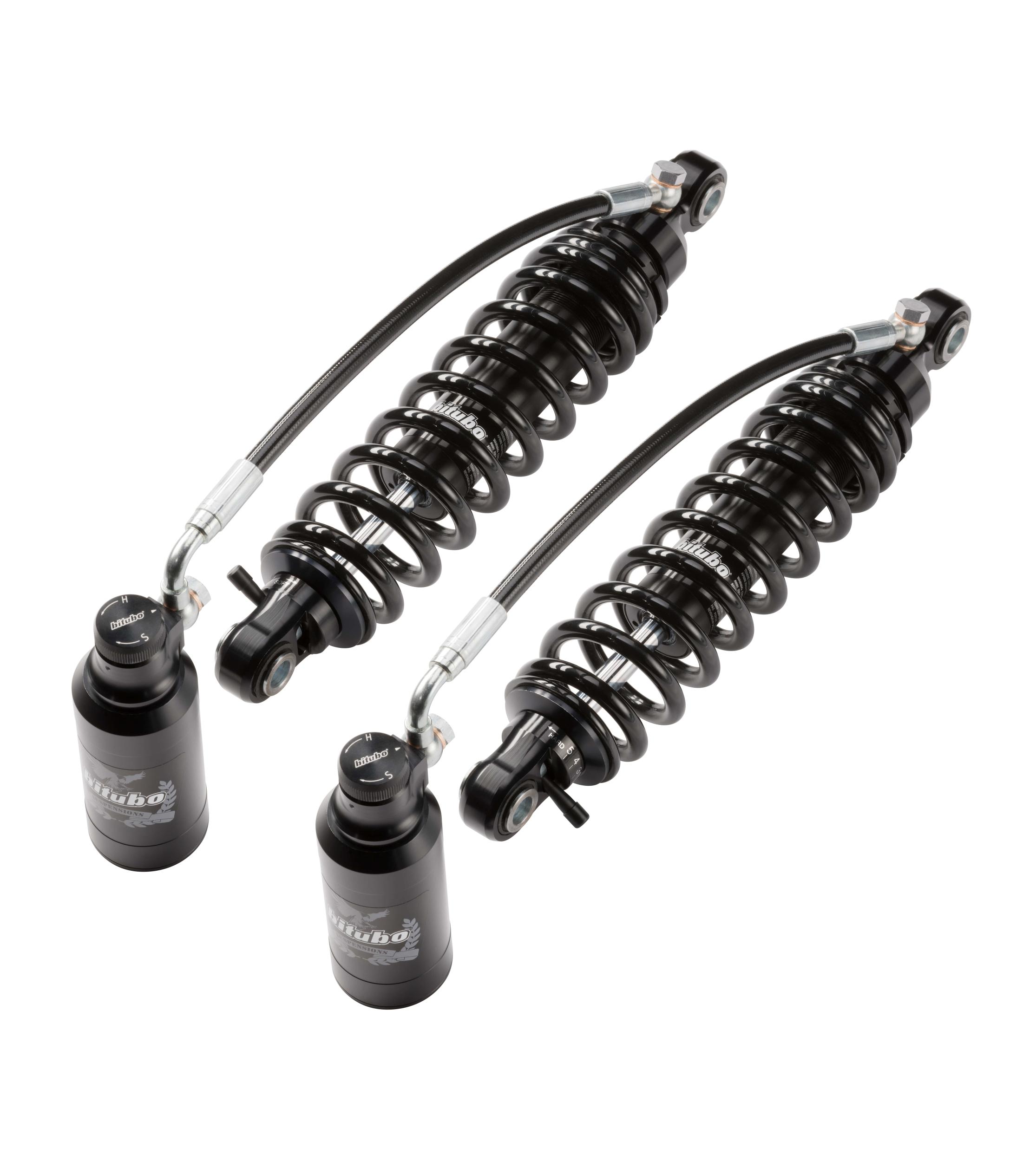Easily adjustable with an exposed remote reservoir featuring a 12-click compression knob, 5-position rebound adjuster lever, 0.5" of travel, and a threaded preload dial to help dial in the stroke for maximum performance. Fully rebuildable and rebuildable, they include mounting brackets, preload adjustment tool, and a LONG-LIFE warranty.