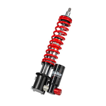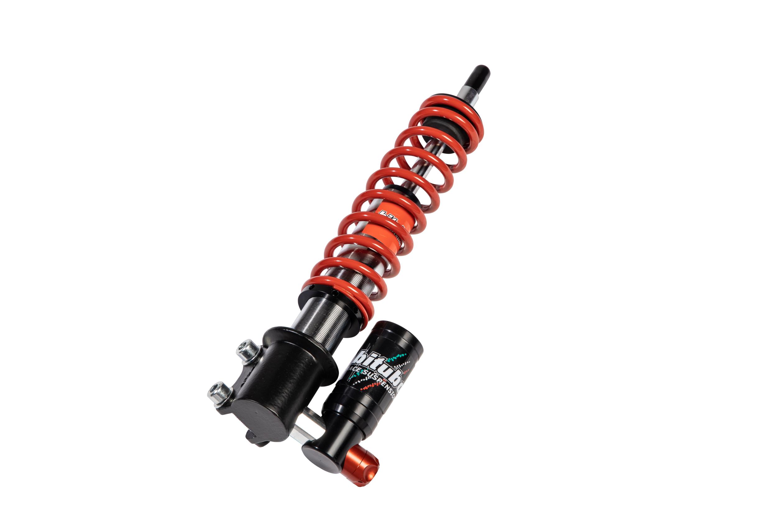 Gas pressurized shock absorbers (Nitrogen) with separate compensation tank, are the evolution of the experience gathered by BITUBO on the racetrack. The lower attachment foot and the compensation tank, made of aluminum alloy, have a special “satin black” paint, chosen not only for its modern and aggressive “look”, but for its characteristics of resistance to wear and oxidizing agents.