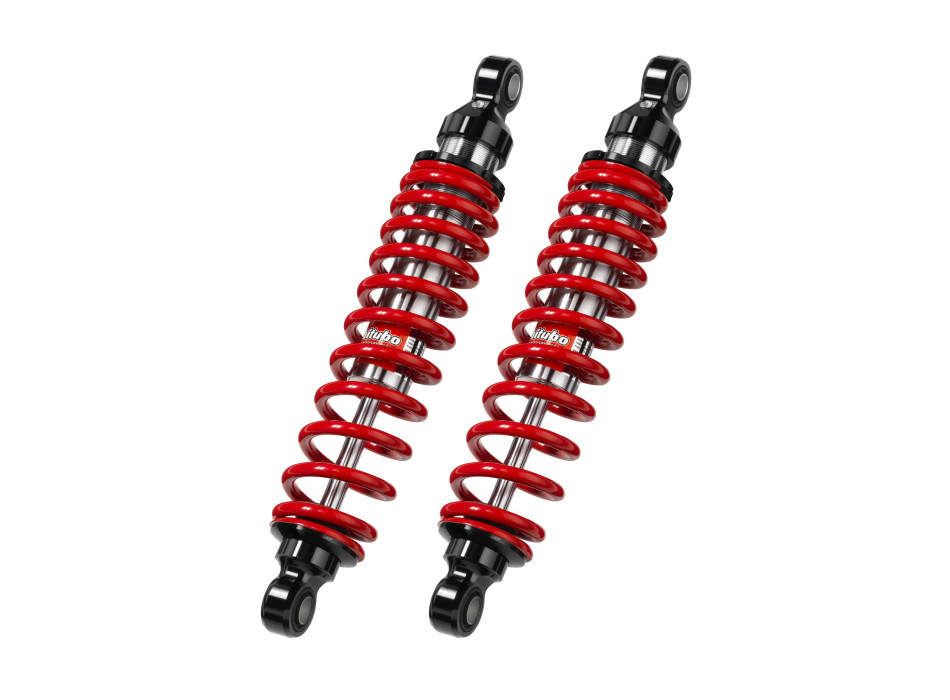 Dedicated to Vespas with double rear shock absorbers, they have specific calibrations for each model, and are available in different colour versions: "01" with red springs for the sportier models, "02V2" totally black for the more classic ones and "03" totally chromed.